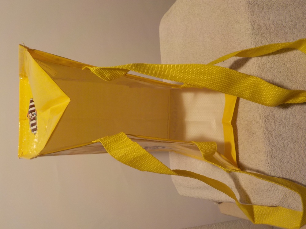 Kleine neuwertige Einkaufstasche von M&M`s Smarties / M&M`s und die M&M-Zeichen sind Marken von Mars, Incorporated, März 2015 / Masse der zusammengelegten Tasche: Breite 30cm Höhe 22cm mit Trage - Henkel