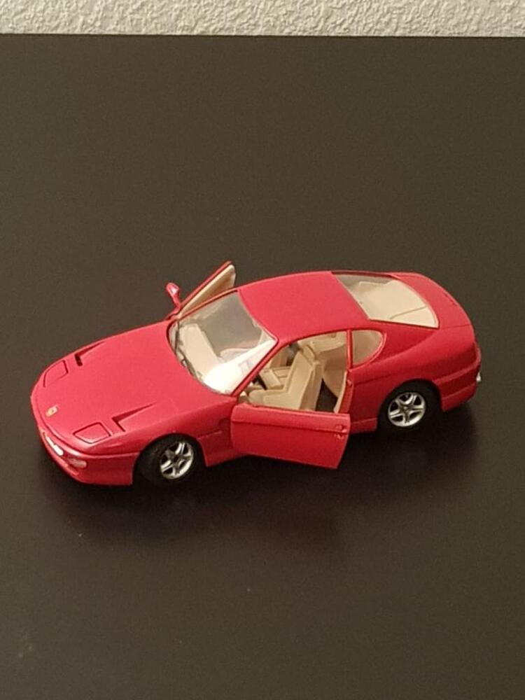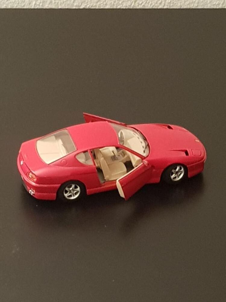 Modellauto Ferrari 456 GT, Farbe rot, 1/25, Länge 18 cm, Breite 7 cm, Höhe 5,5 cm, sehr guter Zustand, stand jahrelang in einer Vitrine, Preis Fr. 25 plus Fr. 7 Porto für Paketversand