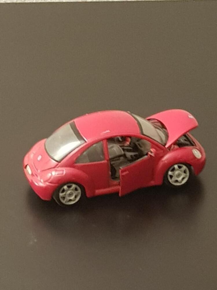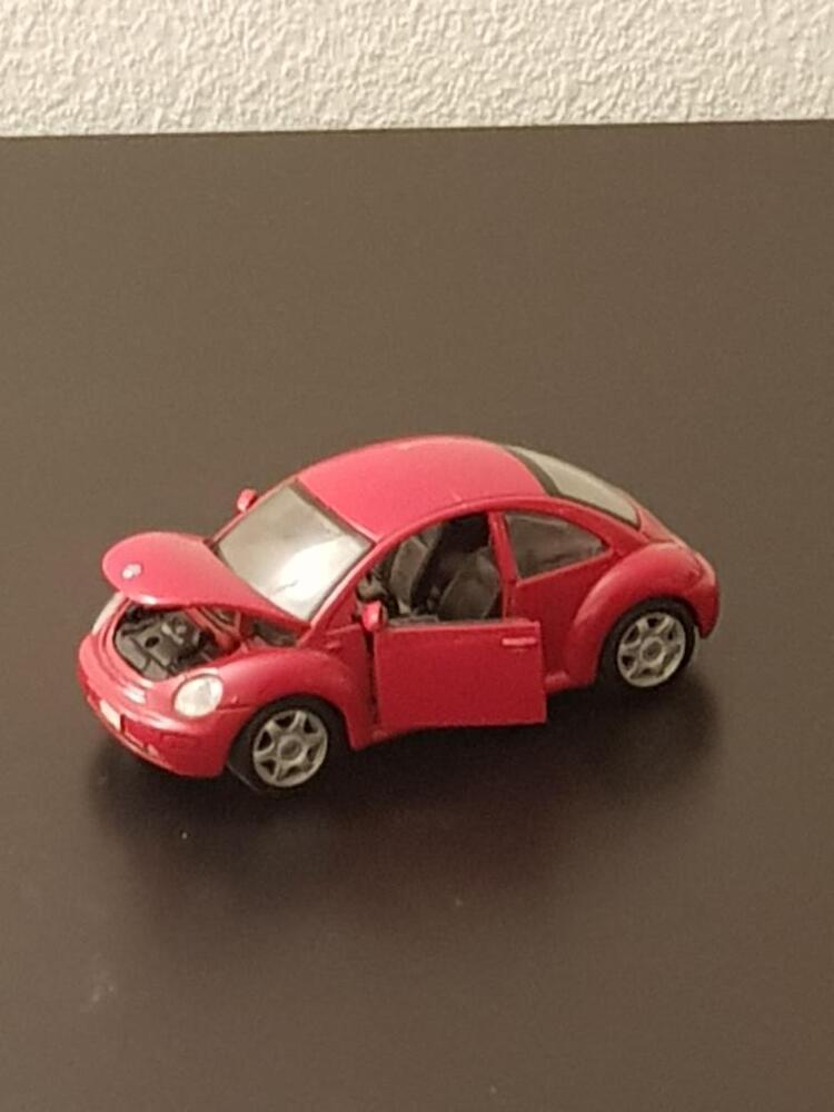Modellauto Volkswagen New Beetle, Farbe rot, 1/25, Länge 16 cm, Breite 6,5 cm, Höhe 6 cm, passabler Zustand, stand jahrelang in einer Vitrine, Preis Fr. 10, plus Fr. 7 für Versand mit Paketpost