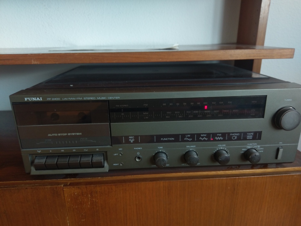 Alte Musikanlage mit Kassettentape, Radio und Plattenspieler inkl. 2 Boxen.