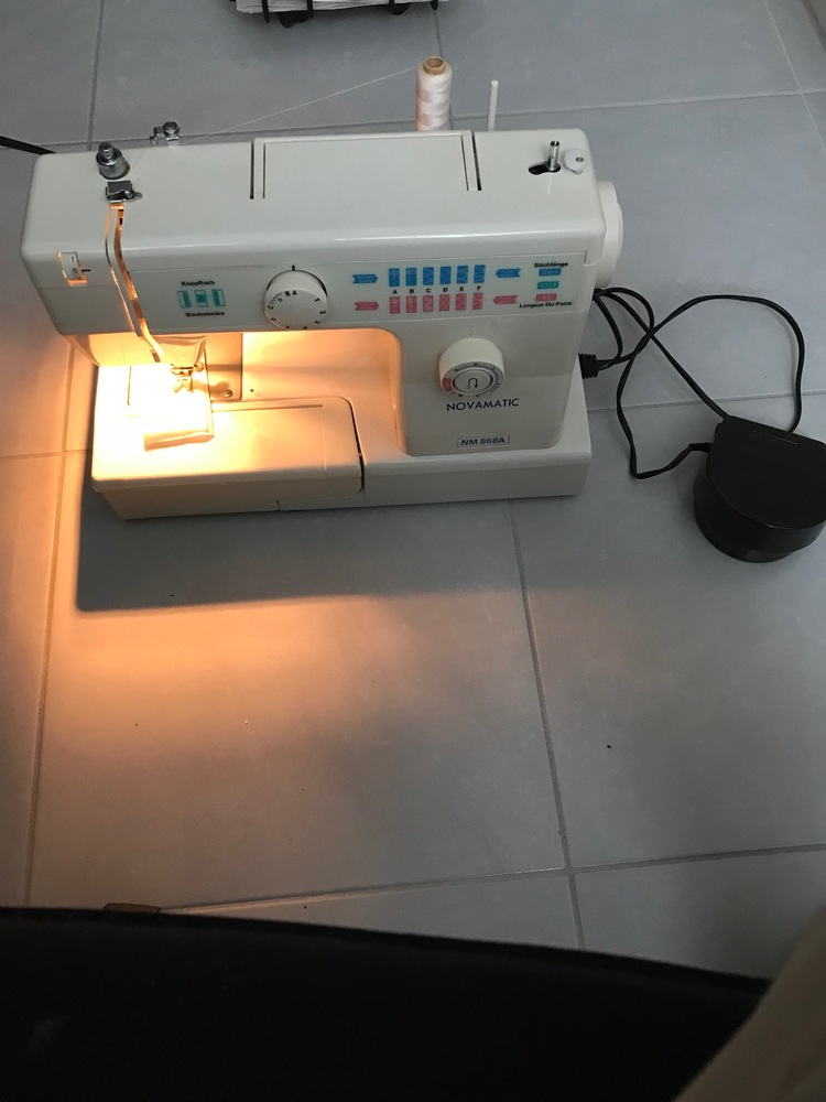 Die Nähmaschine ist defekt mit Zubehör. Abdeckhaube und Anleitung vorhanden.