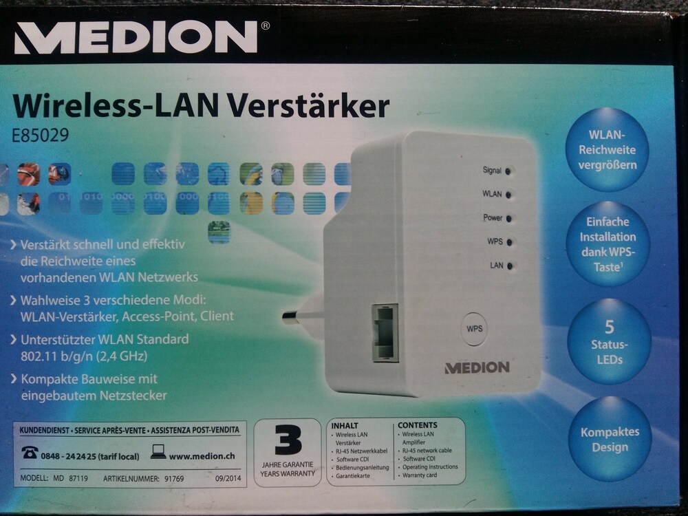 wenn du keine empfang hast in eine zimmer,nur im steckdose einstecken und los geht