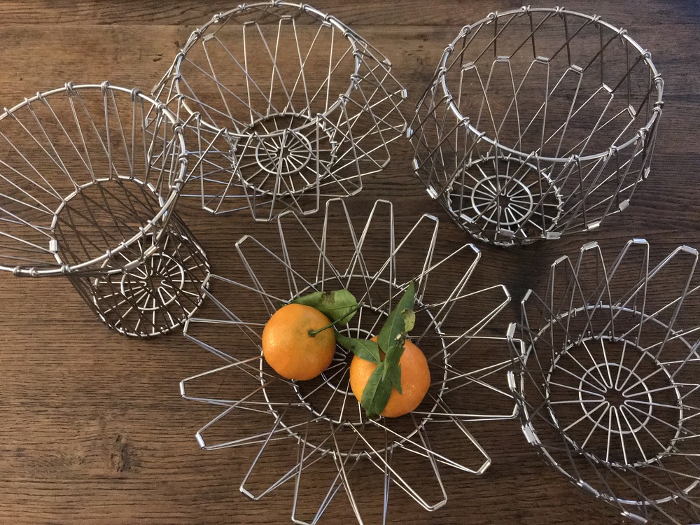 Über verschiedene Gelenke ist der Korb unterschiedlich verstellbar bis hin zur Schale und kann somit multifunktional verwendet werden. Der Metallkorb ist NEU.