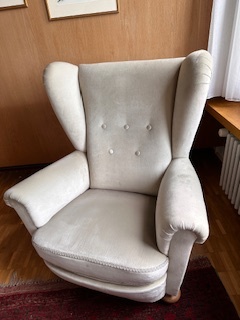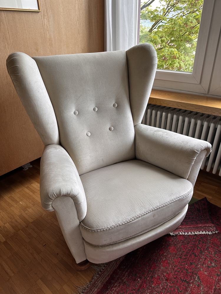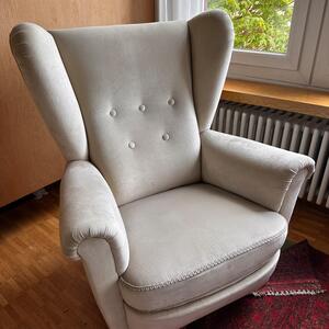Schöner Sessel mit guter Polsterung und zeitlosem Bezug