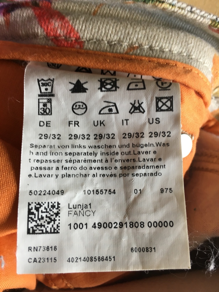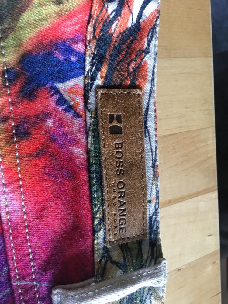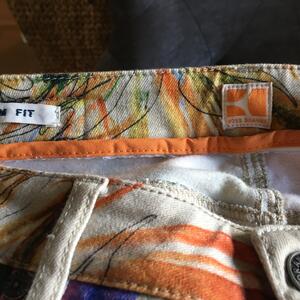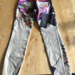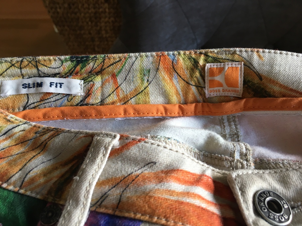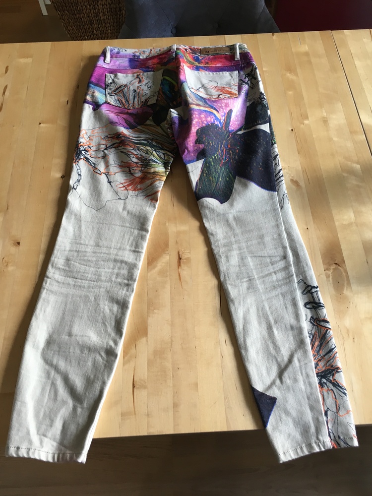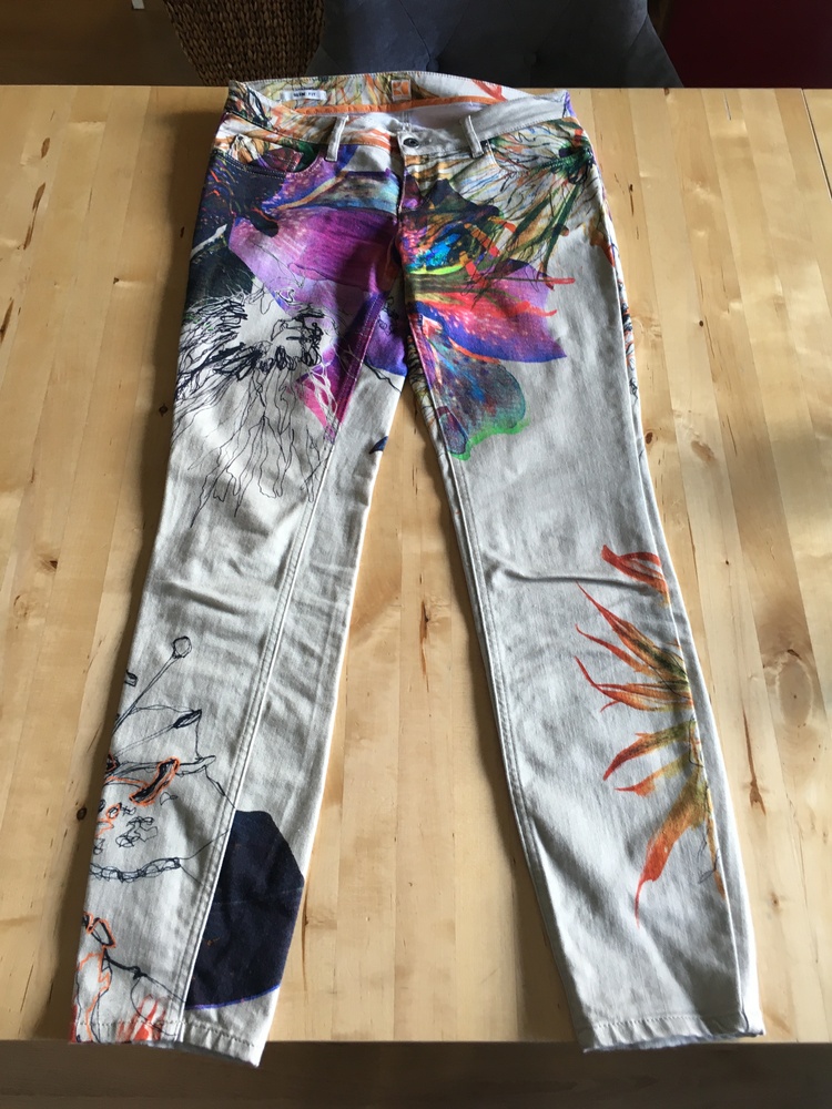 Stylische Damenhose. Größe: 29/32. Tolles Material. Superbequem. Keine Abnutzung. Farbe: multicolor mit Print und beige.
