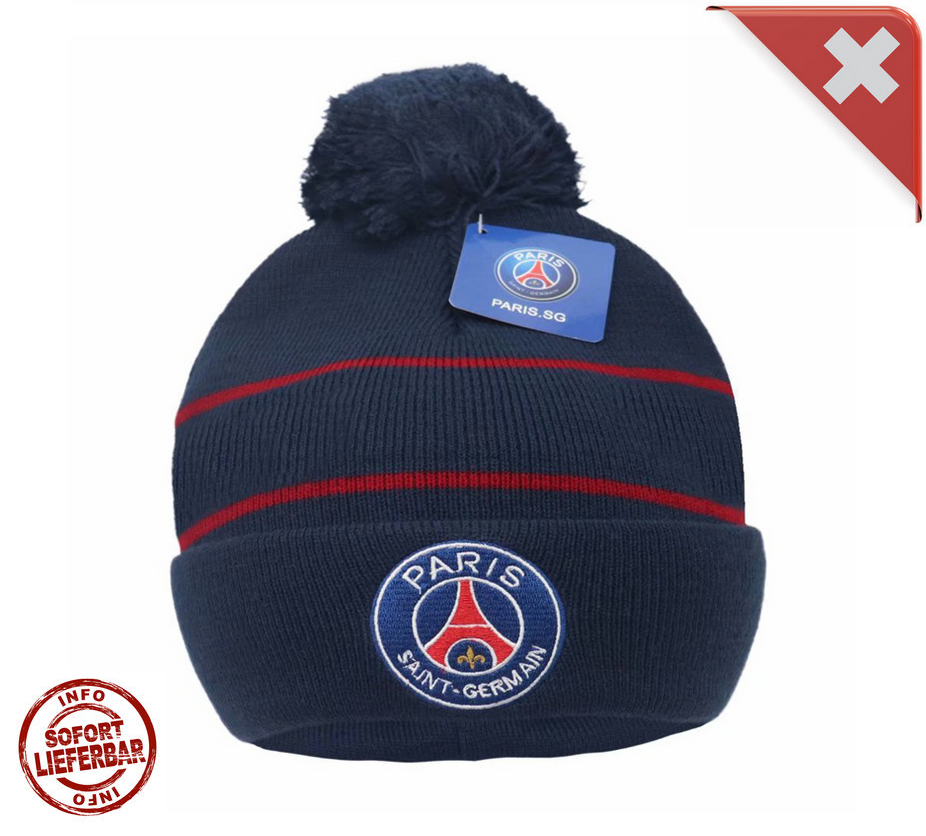 Paris Saint-Germain Mütze mit Bommel PSG Beanie Winter Kappe Fussball Fanartikel