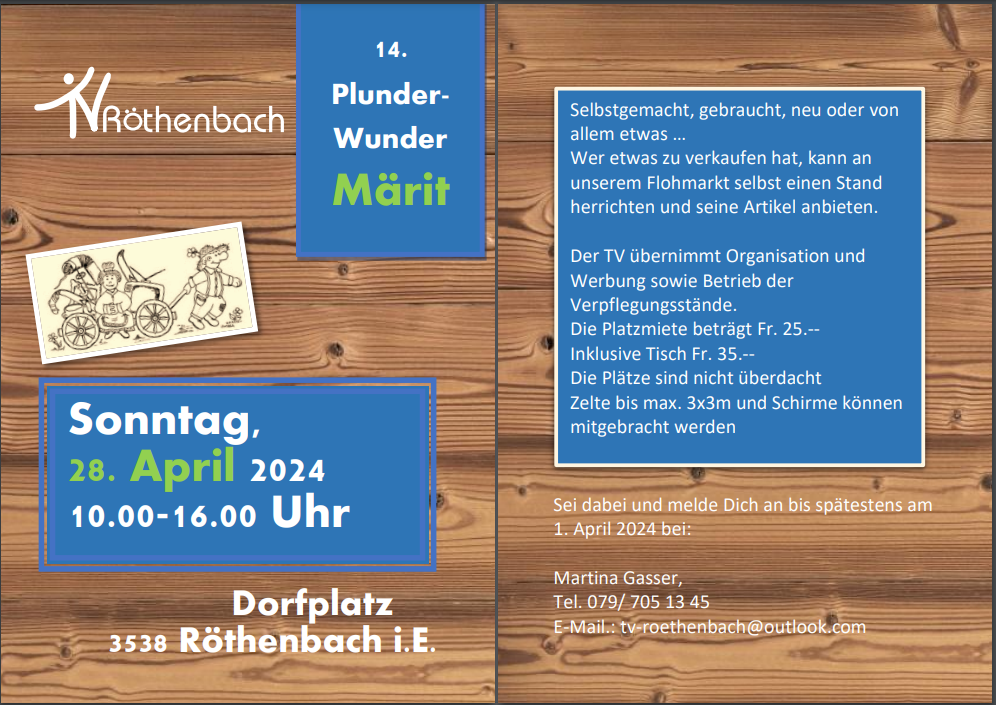Anmeldung unter: 079 705 13 45 oder tv-roethenbach@outlook.com