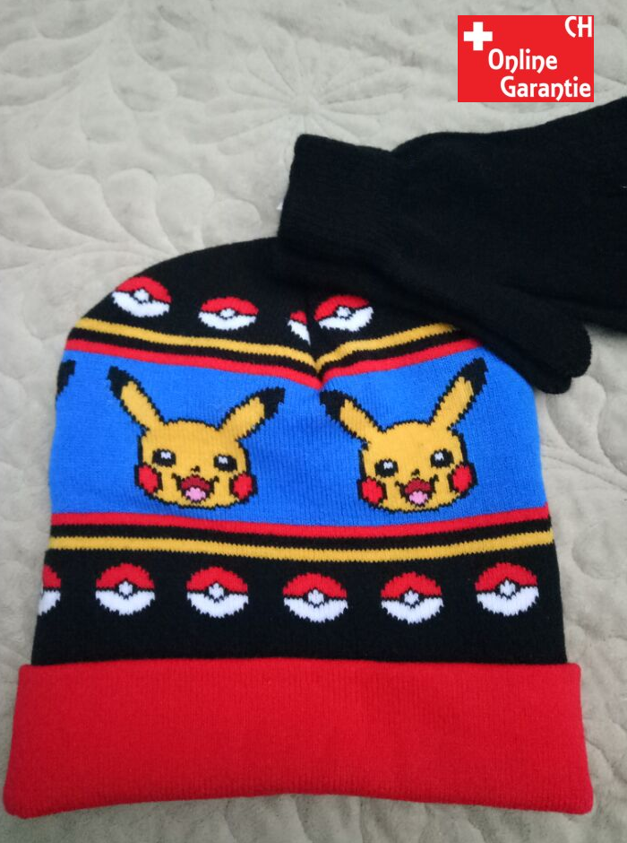Pokemon Pokémon Pikachu Winter Mütze Beanie Handschuhe Kinder Set