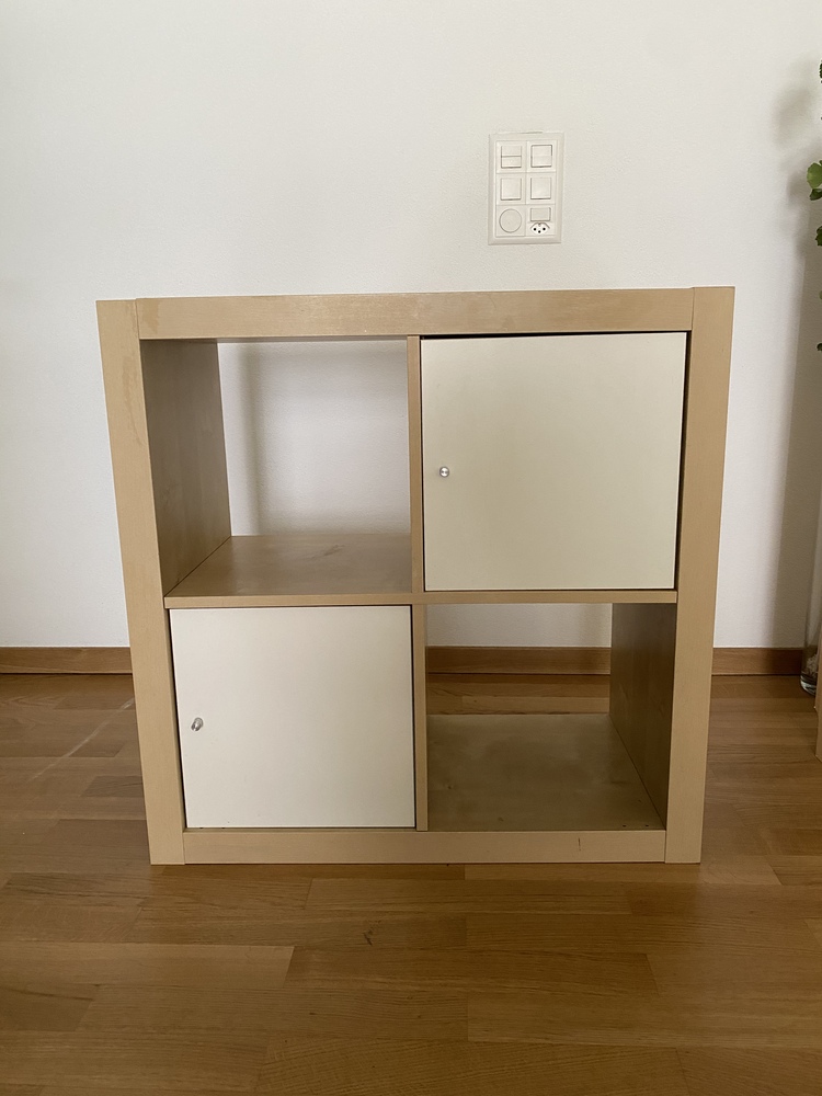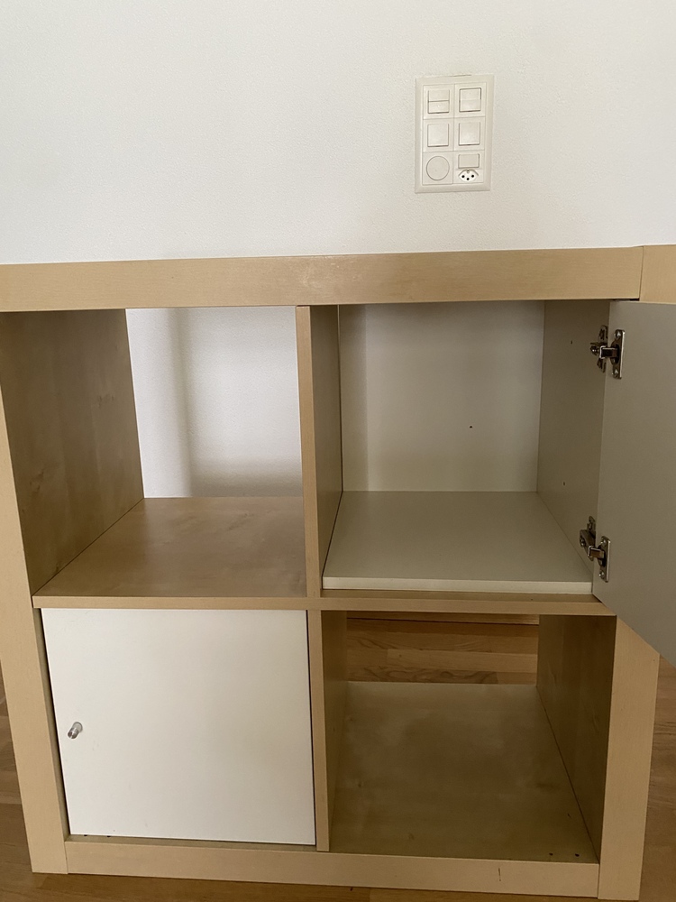 Kleines Regal mit rausnehmbaren/verschiebbaren Einsätzen.