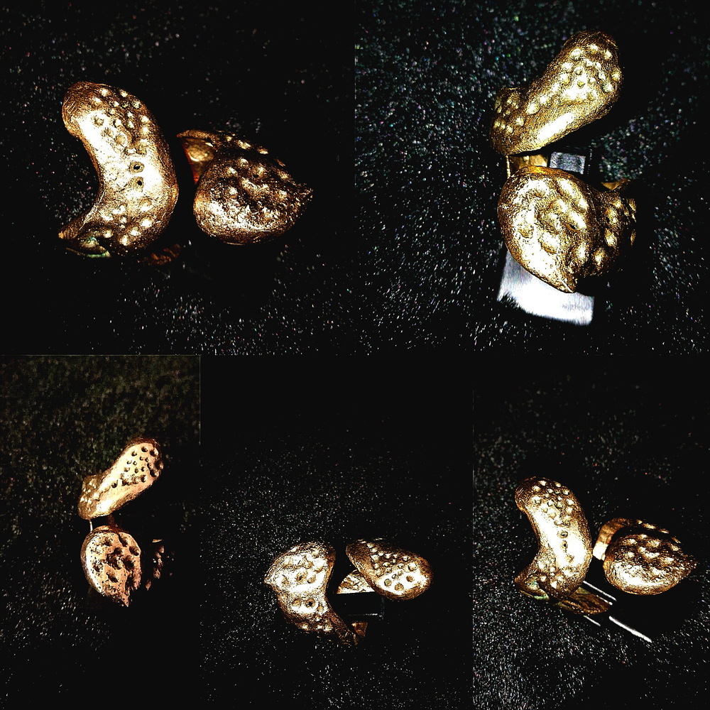 Messing-Bronze "fliesst" zäh um Deinen Finger. Viele kleine Tüpfchen-Kerben lassen den Ring noch fliessender erscheinen.