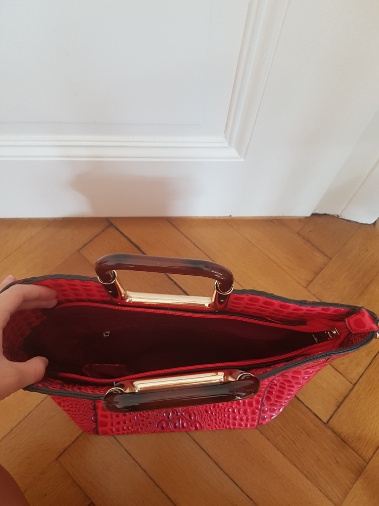 Auffällige rote Tasche, die ich niemals getragen habe.