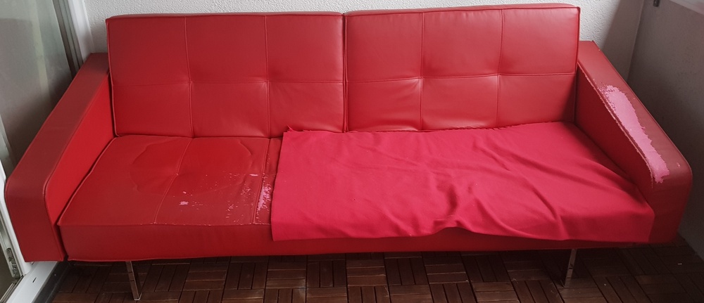 Inserat merkenRotes Lederbettsofa, mit Gebrauchsspuren (Abnutzung, Leder bröckelt, kann aber gut abgedeckt werden mit passender Decke) gegen Abholung zu verschenken!