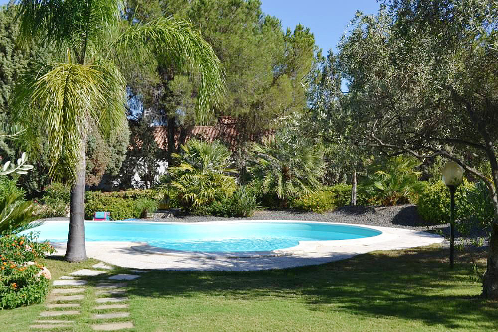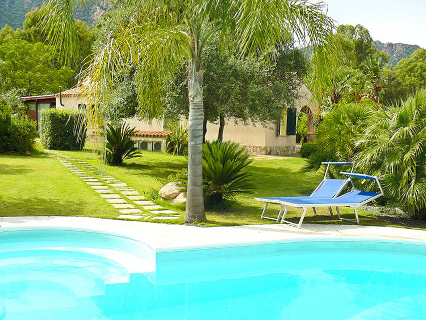 Inserat merkenNur ca. 400 m entfernt vom kristallklaren Meer und weißen Sandstrand von "Is Morus" in der Region "St`Margherita die Pula" - in einem fast nur von privaten Ferienobjekten gelegenen Gebiet - befindet sich dieses sehr geschmackvolle freistehende Ferienhaus umgeben von einem eingezäunten großen sehr gepflegtem mediterranen Gartengrundstück und hauseigenem Swimming-Pool.