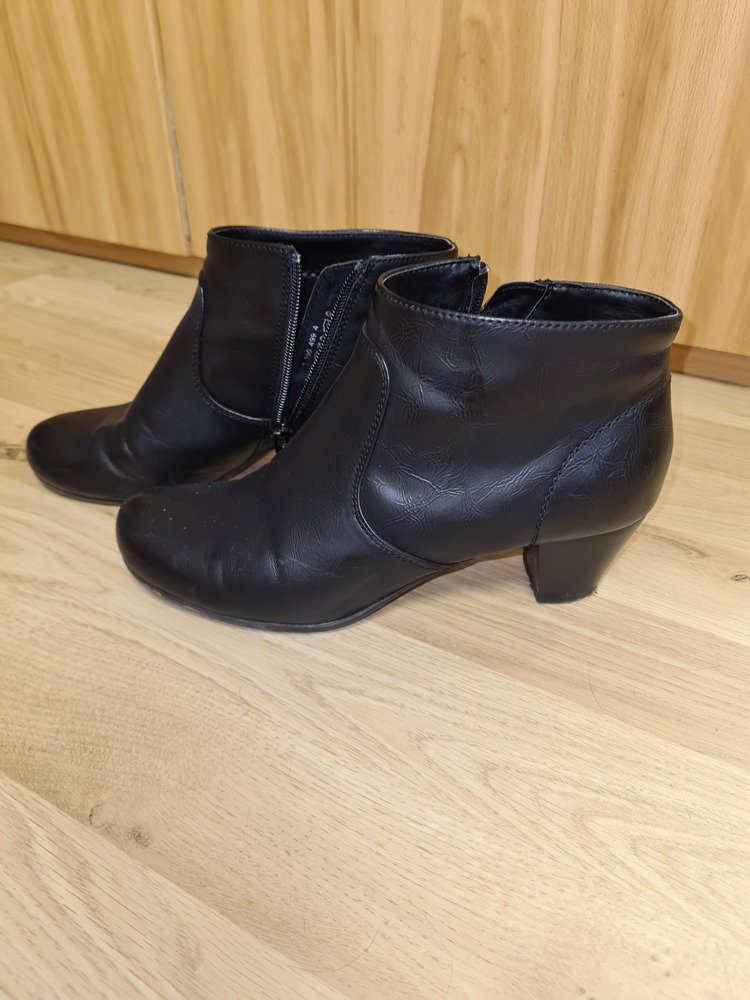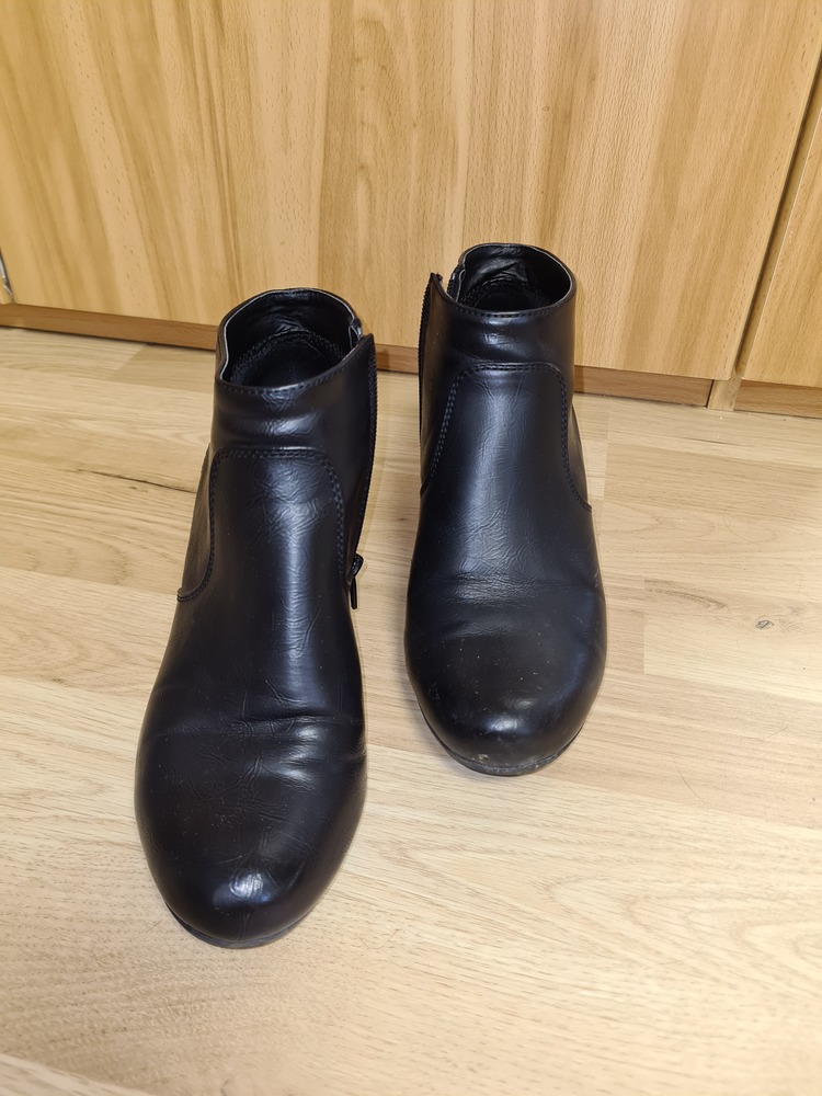 Die Schuhe bestehen aus schwarzem Leder und sind in einem einwandfreien Zustand.