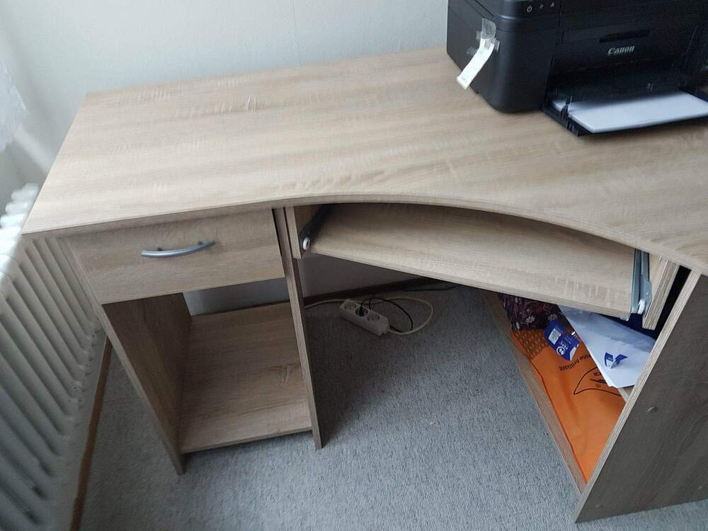 Verkaufe hier einen Schreibtisch. Der ist in einem sehr guten Zustand. Die Maße sind .Breite 118 cm Tiefe 77 cm und die Höhe 77 cm