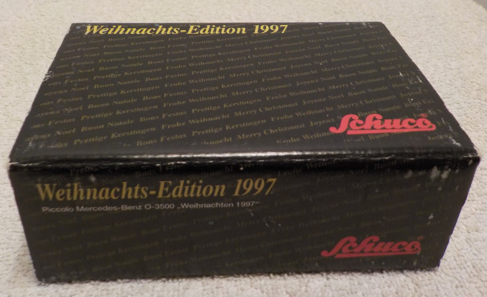 Schuco Mercedes Benz 03500 Bus / auf der Christmas- Tour 1997 / einmalige limitierte Auflage von 3000 Stück / hergestellt November 1997 /Das Modell ist in einem unbespielten und neuwertigen Zustand /mit Zertifikat / in PC Box mit Umkarton / Umkarton hat leichte Lagerspuren / Art. Nr. 01422