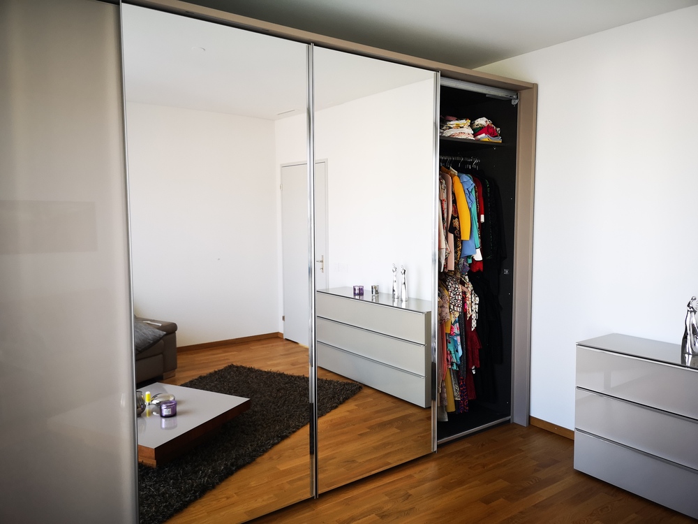4 Abteile - 4 Schwebetüren, in der Mitte mit Riesenspiegel