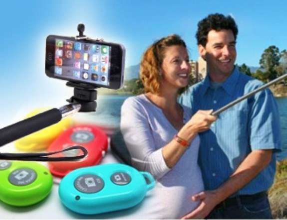 Verbinde Dein Smartphone mit Bluetooth und mit dem abnehmbaren Fernauslöser im Griff vom Selfie Handstativ kannst Du per Knopfdruck sämtliche Fotos schiessen.