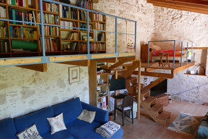 Es liegt mitten im Dorf – typisch kretisch zwischen anderen Häusern, in einer sehr ruhigen Umgebung mit Blick auf die nahen Berge. Es wurde um 1900 erbaut und von 2007 bis 2010 nach modernen Standards restauriert, wobei alle traditionellen Elemente erhalten blieben. Der Außeneingang geht in den hoch ummauerten und mit Bäumen bepflanzten Innenhof. Von dort gelangen Sie in die Wohnküche im Landhausstil mit zentralem Holzofen. Zwischen Küche und Schlafzimmer, geschickt positioniert, ist das Badezimmer mit WC, begehbarerer Dusche und Badewanne. Das Schlafzimmer hat auch einen eigenen Ausgang. Eine Holztreppe führt in das große Wohnzimmer im oberen Stock mit Empore und Galerie, geeignet als Büroraum, Bibliothek und Gästebett. Vom Wohnzimmer aus geht es auf die Terrasse mit Weitblick. Auf der Terrasse befindet sich der Eingang zum Gästezimmer mit eigenem WC und Waschbecken.