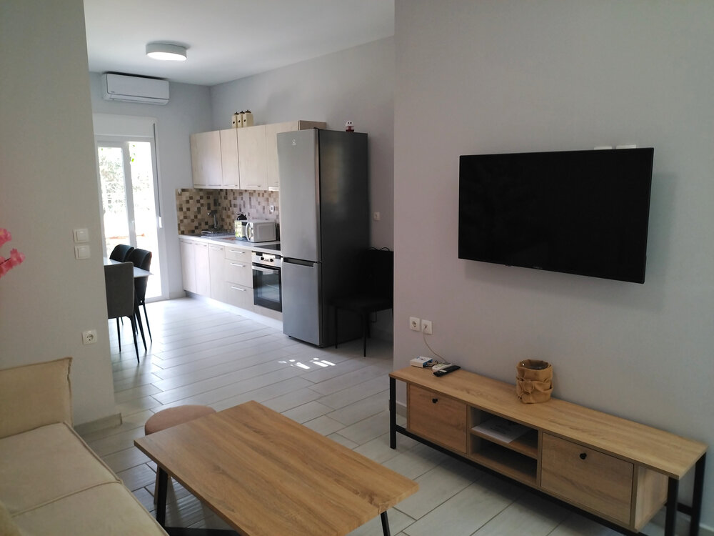 Diese kleine Doppelhaushälfte ist Teil einer kleinen Anlage (vier Häuser – acht Doppelhaushälften) und befindet sich fußläufig keine 10 Minuten (ca. 600 Meter) vom Strand entfernt. Sie liegt an der Durchfahrtsstraße der wachsenden Ortschaft Pirgos Psilonerou an der Nordküste Kretas – zwischen Maleme und Gerani.
