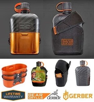 GERBER Bear Grylls Flasche 1 Liter mit Tasche Auslaufsicher zum Kochen geeignet