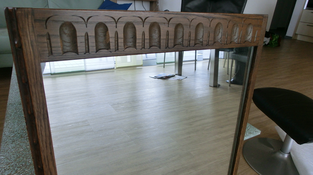 Spiegel im Tudor-Stil. Grösse: 82 x 51 cm. Mit stabiler Aufhängung.