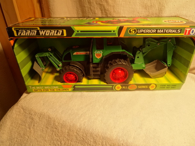 Neuer Ungebrauchter Traktor mit Schneeraum Schild und Heckbagger/ Masse in ca.: zusammen gelegt 37cm Höhe 15cm Tiefe 11cm / In OVP / Schild – Heckbagger bewegbar / aus stabilem Kunststoff / nicht geeignet für Kinder unter 3 Jahren / Marke Farm World / Made in China