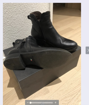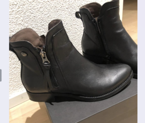 Ich verkaufe ein Paar wunderschöne schwarze Stiefelette, die in einwandfreiem Zustand sind und nur einmal kurz getragen wurden. Diese Stiefelette sind die perfekte Ergänzung für Ihre Schuhsammlung und passen zu verschiedenen Anlässen und Outfits.