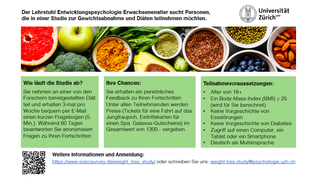 Bei Fragen können Sie sich gerne bei uns melden: weight.loss.study@psychologie.uzh.ch