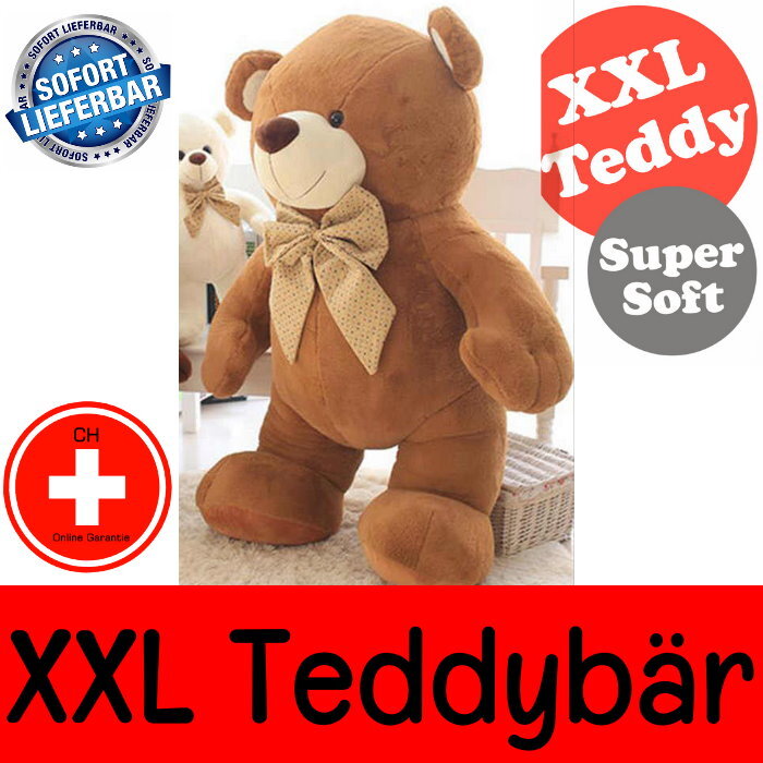 Alle Teddy-Freunde aufgepasst! Der hellbraune Plüschbär ist angenehm weich und lädt somit seinen neuen Besitzer zum Knuddeln und Kuscheln ein. Dank seiner XXL-Grösse von etwa 210 cm ist er allerdings auch ebenso gut zum Spielen geeignet.