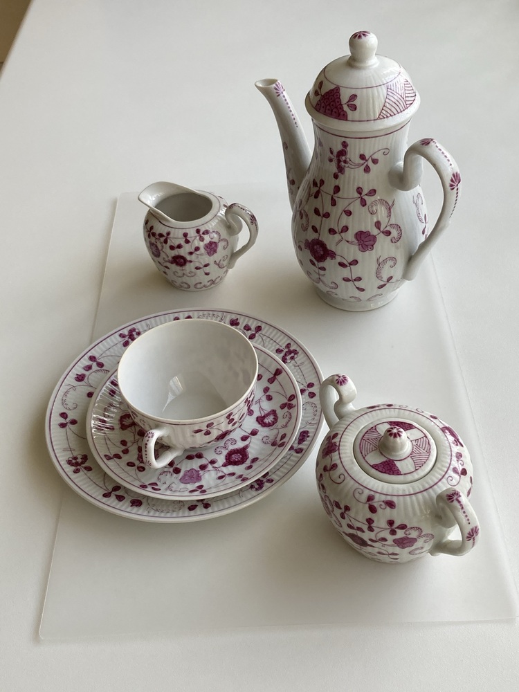 zu verkaufen Tee - Porzellanset neuwertig , noch nie gebraucht , handbemalt bestehend aus 7 Dessertteller , 7 Unterteller, 7 Tassen , 1 Krug , 1 Milchkännlein und 1 Zuckerdose