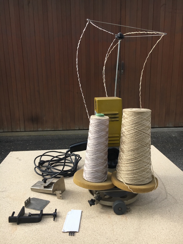 Kuerbelmaschiene +MINIKETT" ink. 110 Spulen Originalgarn assortiert.