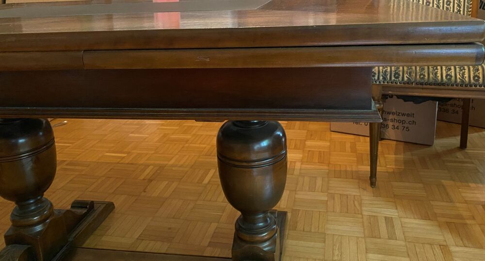 Eleganter Auszieh-Tisch Neorenaissance massiv mit Schiefer Tischblatt.