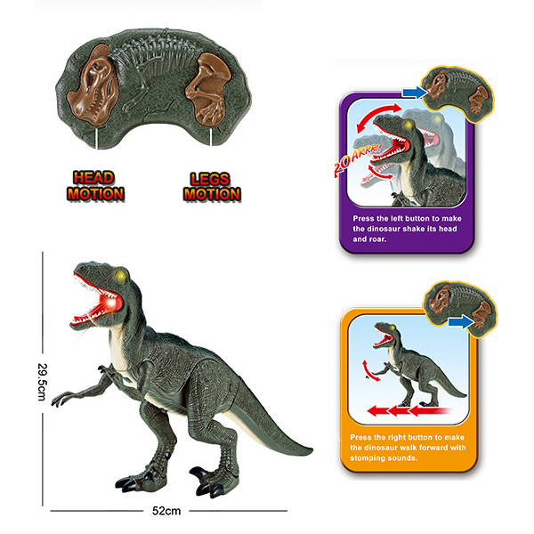 Mit dem Infrarot-Controller, der über 2 Tasten für Kopf- und Beinbewegungen verfügt, können Sie den prähistorischen Velociraptor bedienen. Der Raptor wird mit 3 AA-Batterien betrieben, während der Controller 3 AA benötigt (beide nicht im Lieferumfang enthalten). Der legendäre Dinosaurier kann laufen, brüllen, rütteln und hat leuchtende Augen.