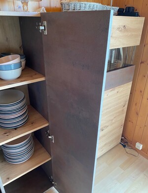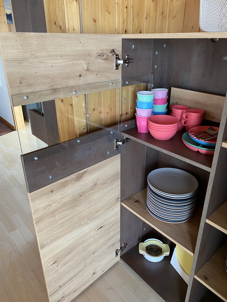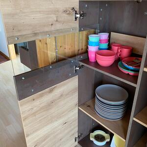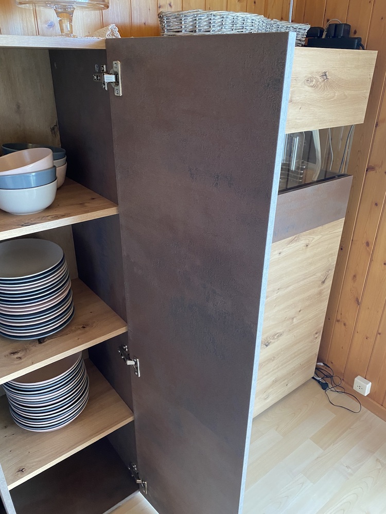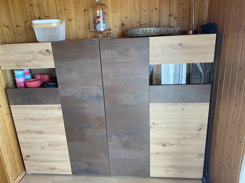 Die Vitrine in der modernen und stylischen Farbkombination Dekor Eiche Artisan/Rost inkl. LED-Beleuchtung.