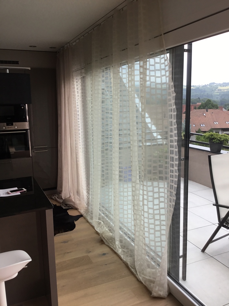 Die Vorhänge wurden in einem Fachgeschäft für Innendekoration konfektioniert. NP: 1900.- (Rechnung vorhanden)