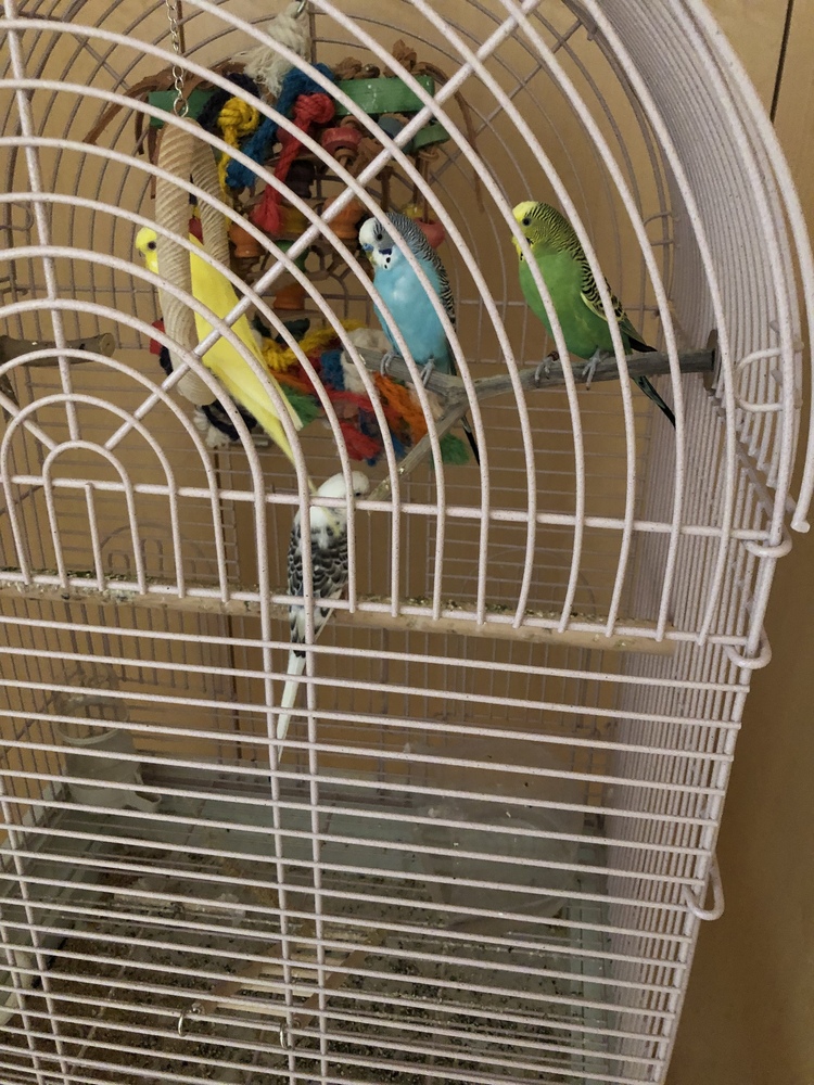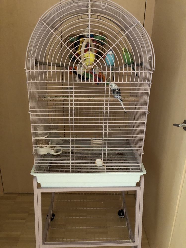 2 Paare Wellensittiche mit Käfig und Zubehör zu Verkaufen.