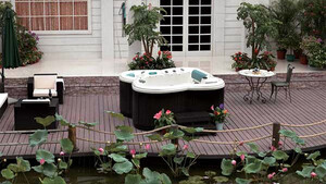 Weitere Eigenschaften wie 1 in sieben Farben beleuchteter Wasserfall, 3 Kopfstützen,1 Aroma- und 1 Lichttherapie, 30 Glasfaser LED-Perimeter Beleuchtung, 1 Winterisolation.
