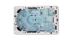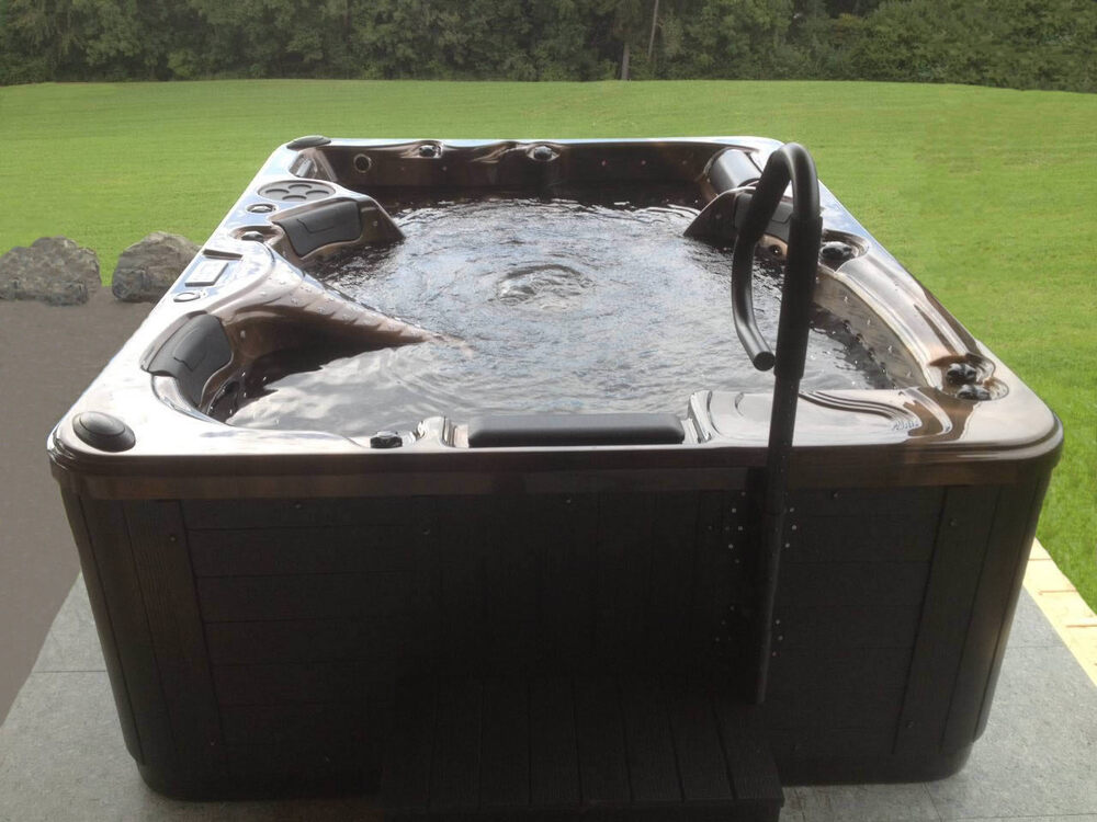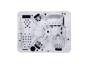 Dieser Whirlpool bietet Platz für sechs Personen und Eigenschaften wie Jacuzzi-Badewanne, Hydro-Massage an Hals, Rücken, Hüfte, Oberschenkel und Waden und ein selbständiges Reinigungssystem.