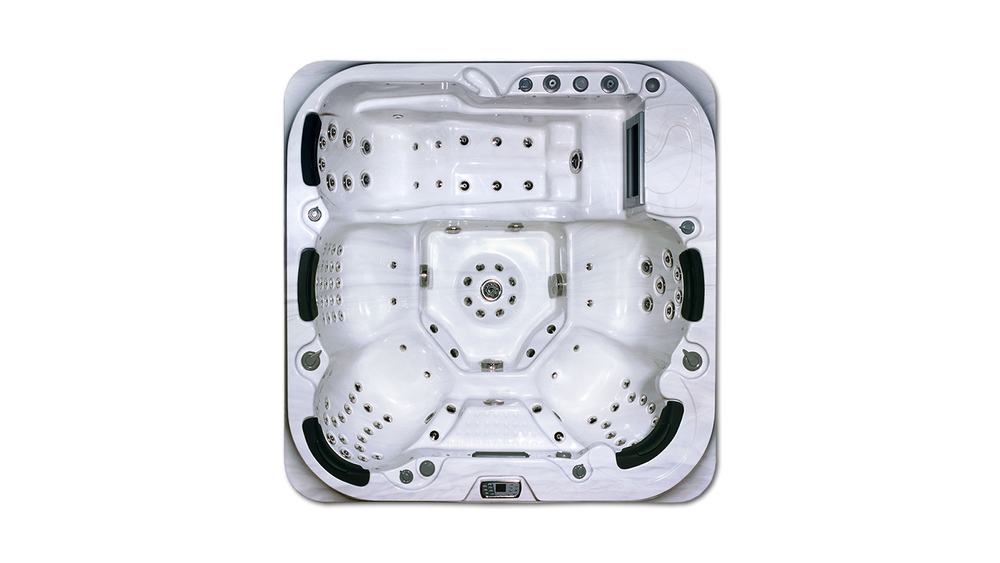 99 INOX Jets, 1 grosse Kingsize Liege, 2 Ecksitze, 2 Sitze, 1 Nackenmassagesitz sowie 1 selbständiges Reinigungssystem. Inkl. 42 Glasfaser LED Perimeter Beleuchtung, 2 römische Fontänen und 1 Wasserfall in 7 Farben beleuchtet.