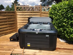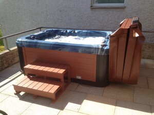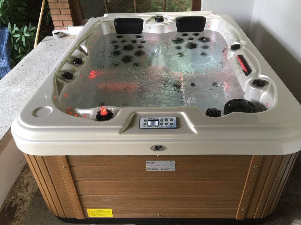 Dieser Whirlpool bietet Platz für drei Personen und Eigenschaften wie Jacuzzi-Badewanne, Hydro-Massage an Hals, Rücken, und Hüfte, mehrfarbige Perimeter-Beleuchtung, Aroma-Therapie, Farblicht-Therapie, Tub Tray Polyester Boden, PVC Treppe, Heavy Duty-Cover, ein beleuchteter Wasserfall, ein beleuchtetes Wasserspiel, sowie ein selbständiges Reinigungssystem.