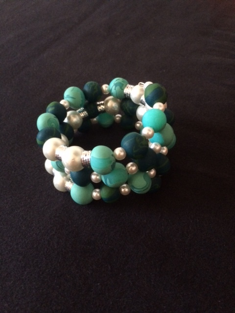 modernes Wickelarmband mit in kräftigen Grüntönen von Hand geformten Perlen