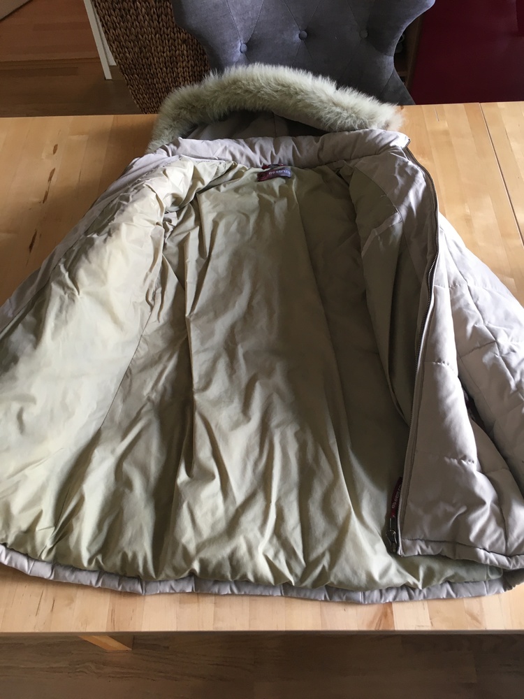 Superwarme Damen-Winterjacke mit Entendaunen. Farbe: beige (keine Verschmutzungen). Größe: M. Marke: Essenza.