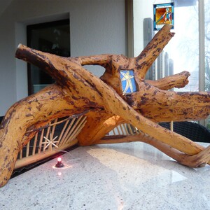 Unikat aus Baumstock gefertigt. Stern Tiffany, mit Beleuchtung. Breite85 cm, Höh...