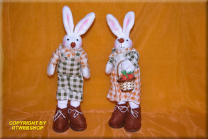 Herzig stehendes Stoff-Osterhasenpärchen. Liebevoll genäht und wunderschön angez...