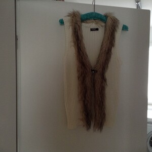 Gut erhaltenes Strick-Gilet mit Imitationspelzkragen, Fr. 8.--