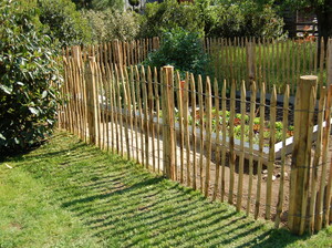 (132) Rollzaun für Ihren Garten aus Kastanien Staketen. - Aufgerollt zu Rollen...