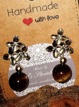 Ohrstecker "Flowers & Tigereye" Hübsche Ohrstecker aus Messing-Blümchen...