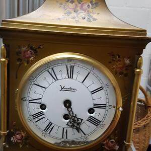 Schön bemalte und gut erhaltene Pendule, Marke YVERDON. Sie hat einen wunders...