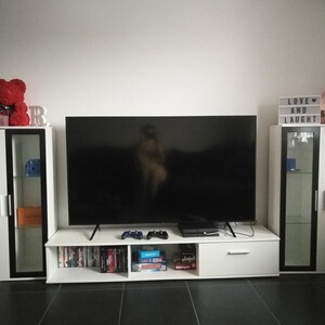 Moderne 3-teilige Wohnwand, bestehend aus zwei Seitenschränken und einer TV-Komm...
